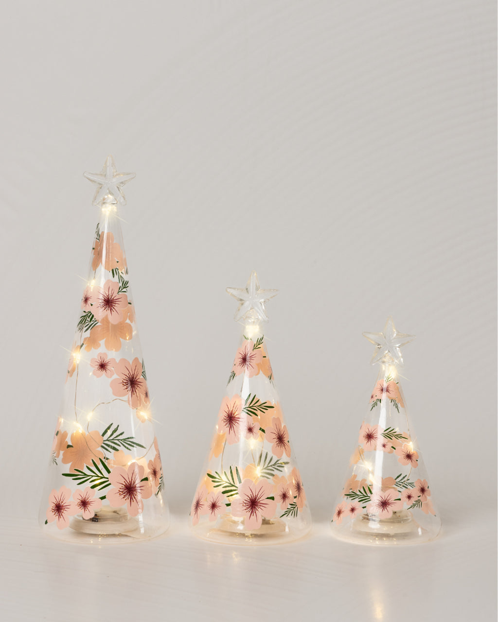 Our Manuka cone shaped glass twinkle trees come complete with a shining star on top.