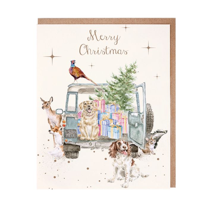 'Driving Home for Christmas' Dog and Woodland Animal Christmas Card Pack