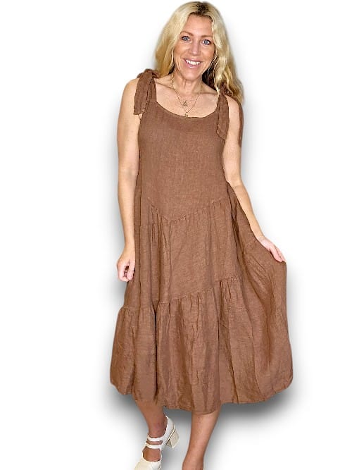 Helga May Coffee Bow-Tie Summer Dress