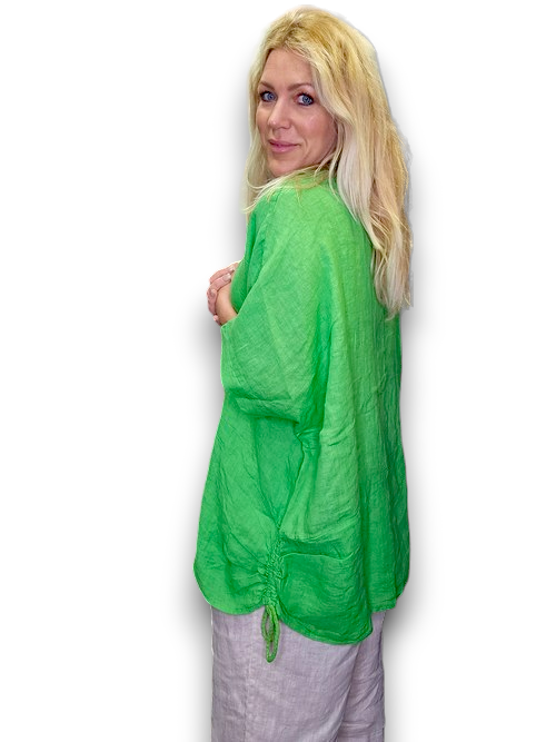 Comp:100% Linen. Made in Italy *Linen garments are hand dyed & printed. Imperfections may occur and is expected as part of the look*