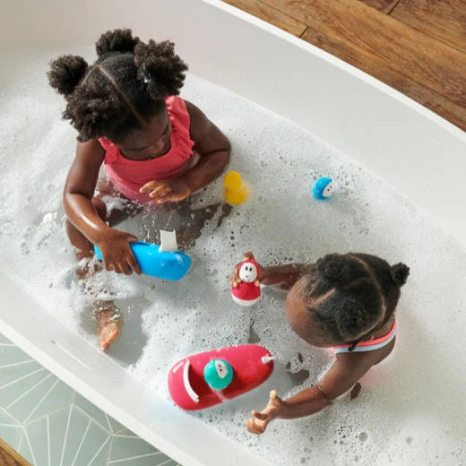 The Matchstick Monkey Bathtime Boat Set promises to provide endless bathtime fun for babies and toddlers. Soft to touch and ergonomically designed, the bath boat set is built to encourage early development, imaginative play and sharpen fine motor skills. Contains BioCote® Antimicrobial Protection, which reduces microbes, making it more hygienic than any other bath toys on the market, and easier to keep fresh and clean. Includes 1 Boat and 1 Wobbler Made from FDA approved food-grade silicone & BPA-free ABS & PP materials