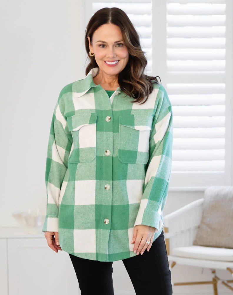 Say hello to the ultimate layering piece – the Shannon Shacket. With its bold green and white check and cosy brushed finish, this oversized shirt-jacket hybrid brings warmth and style in one easy throw-on. Wear it open over a tee or buttoned up with jeans for that cool-casual look.
