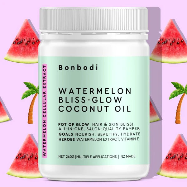 Introducing our limited edition Watermelon Bliss-Glow Coconut Oil! 🍉✨ Immerse yourself in the radiant glow of summer with this luscious elixir for your skin and hair. 🌴🌞