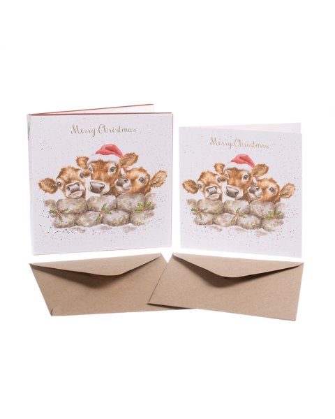 A pack of 8 quality Christmas cards and envelopes from Wrendale Designs, presented in a beautiful wallet style from signature textured board. Card Size: 120mm x 120mm.
